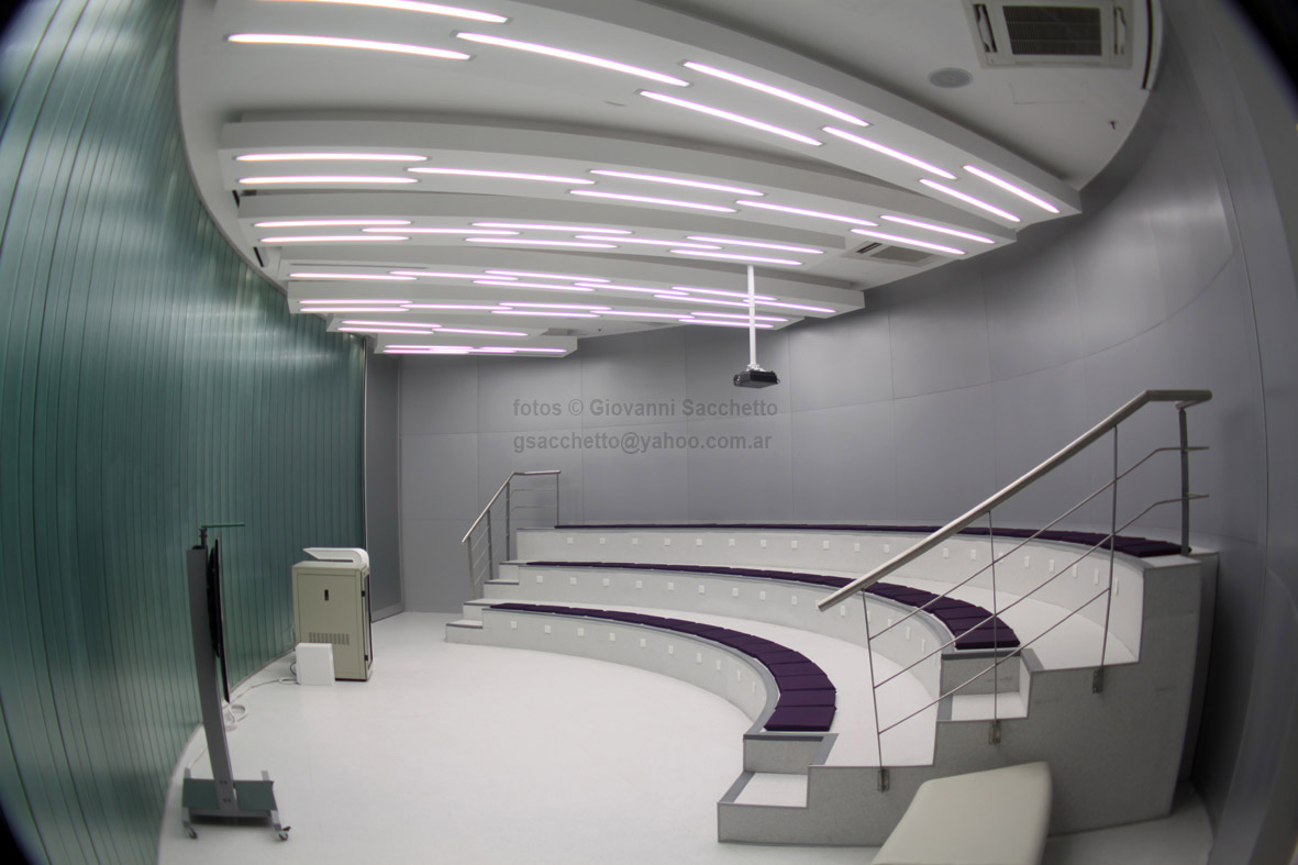 El auditorio fue otro de los espacios en el cual se ha trabajado con la línea de perfiles lineales, con un diseño que exalta la arquitectura